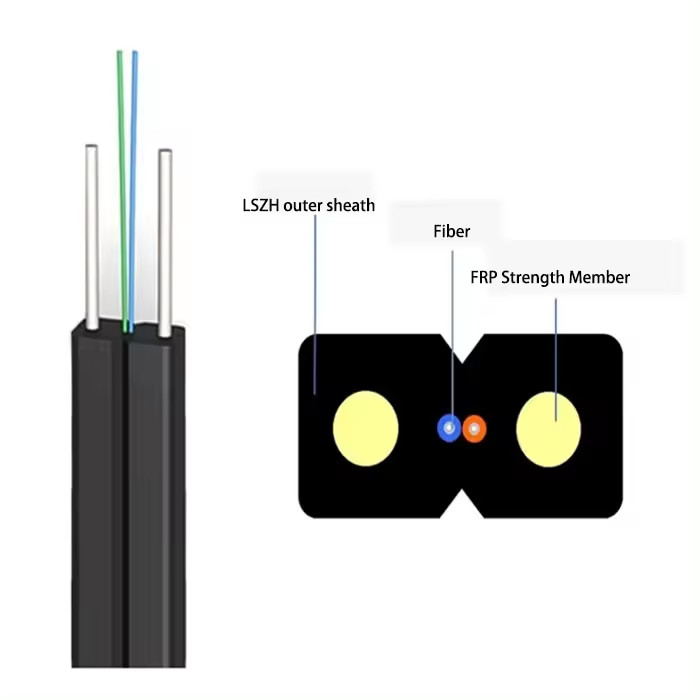 GJYXCH FTTH Drop Cable jest przeznaczony do zastosowań FTTH w pomieszczeniach.Dwa równoległe metalowe elementy wytrzymałości (przewody stalowe) znajdują się po obu stronach dla integralności konstrukcyjnejWydział jest wykonany z materiału Low Smoke Zero Halogen (LSZH), dostępny w kolorze czarnym lub niestandardowym.